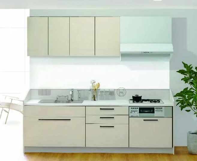 標準工事内容:養生・解体処分・下地工事・給排水工事・キッチン組立・電気配線接続・キッチンパネル張り工事(パネル代別途)