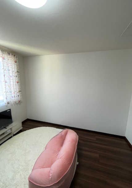 入口は2ヵ所あったため、木工事で壁を作成し2部屋に間仕切ることにし、クロスもS さまにお選びいただきました。違和感なく自然な感じに仕上がったとご満足いただき、有難うございました。