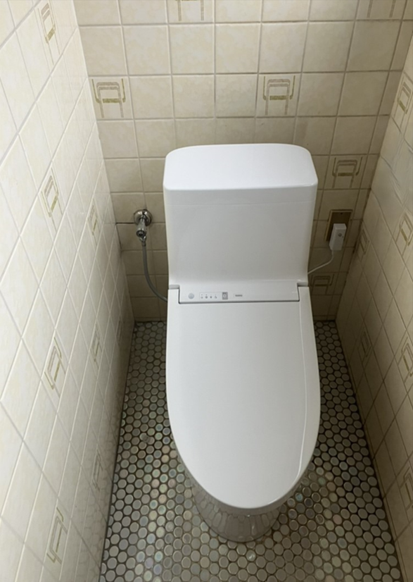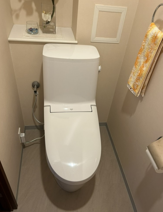 ウオシュレットが故障してしまったため、取替のご依頼をいただきました。新しいトイレは便器のフチがなくなったので、Wさまからお掃除がしやすくなったと喜んでいただけました。